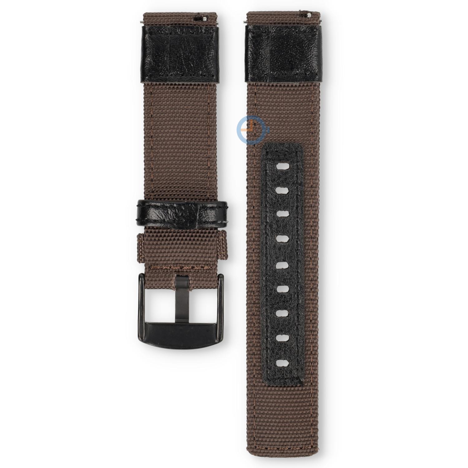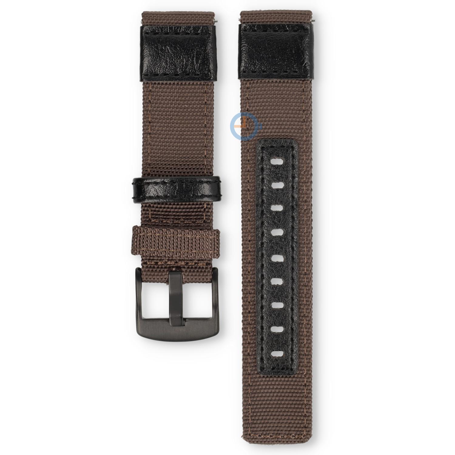 Hybride watch strap - nylon/leather - 22mm brown