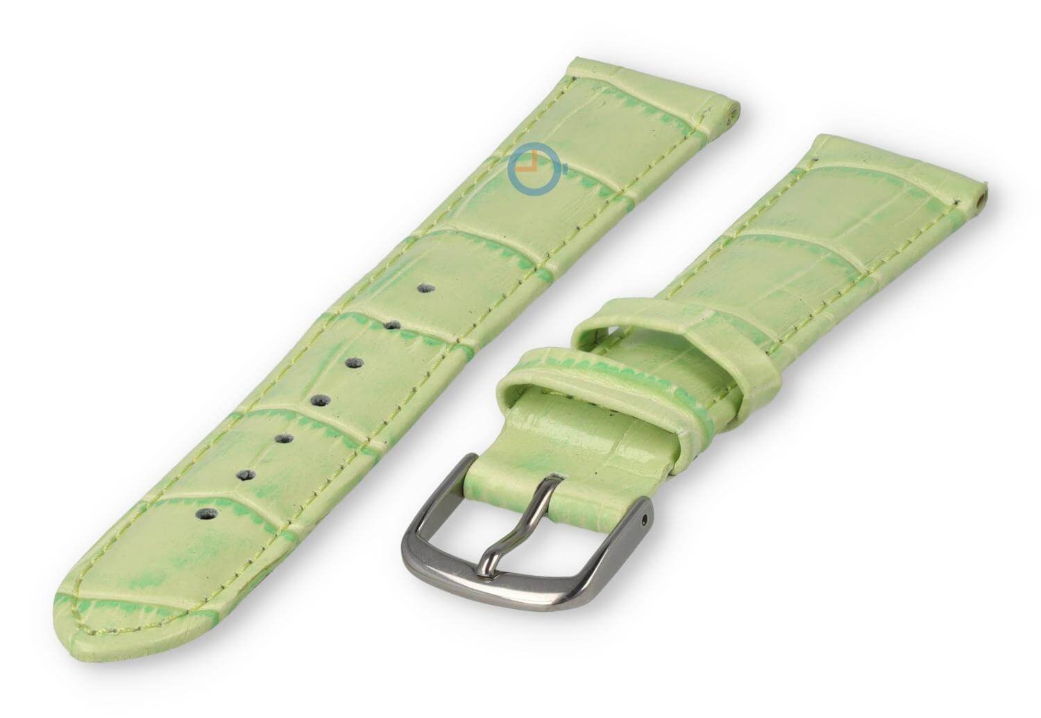 Leather strap with frizzled print - 16mm - apple green. Simple deluxe watch strap in solid colour. The watch strap has a calfskin nubuk underside for ultimate comfort. This genuine leather watch strap is 16mm wide. You will receive this leather strap including the stainless steel buckle in silver colour.