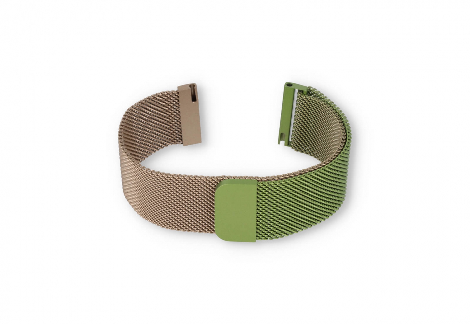 Green mesh watch strap 22mm. Do you want a real eye-catcher on your wrist. Then choose our watch strap with gradient colour. With two colours you can brighten up your watch. Mesh has a super classy look and is now available in new bright colors. Impress with a sleek design and enjoy the light weight.