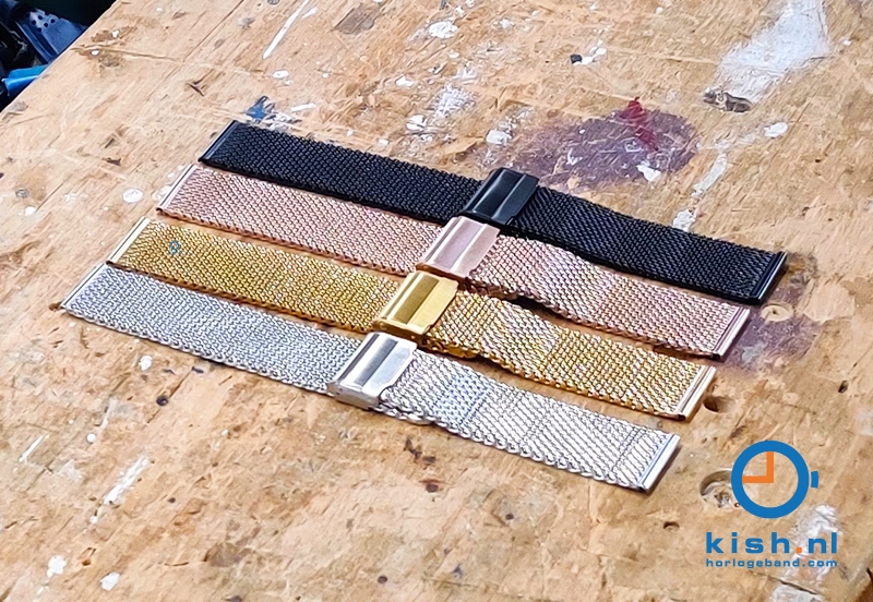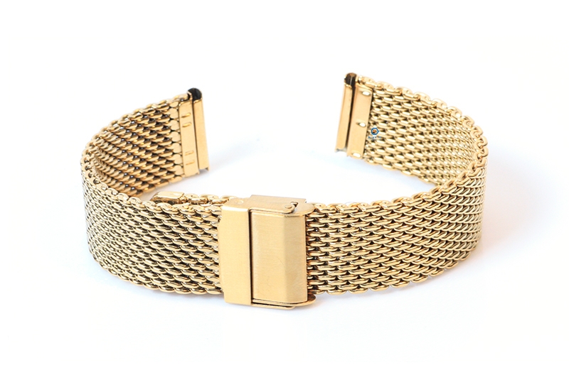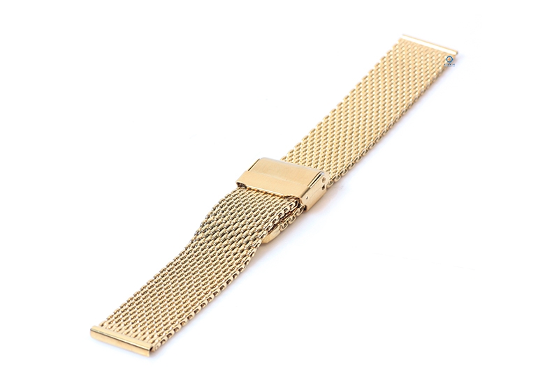 Universal watch strap 18mm gold. This steel watchstrap gives your watch a tough, but classy look. The braided steel is not only super strong, but also much more flexible than a watchstrap with links. The robust watchstrap has an adjustable clasp with an extra safety system. You can easily adjust the closure yourself, so the watchstrap is suitable for almost every wrist size.