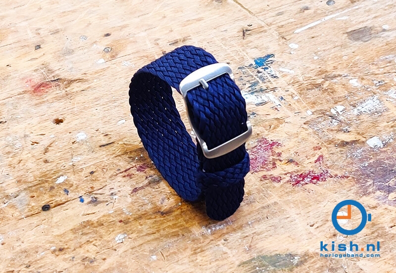 Perlon is a very strong synthetic fibre that is related to nylon. This material is used in parachutes and ropes for the Air Force and the Navy. The braided bracelet can take a beating and is water resistant. en is waterbestendig. The edges of the bracelet are sealed with a laser, so the bracelet has no frayed edges.