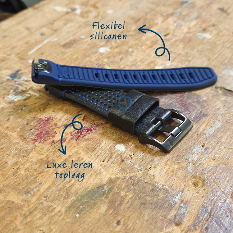 With this premium band you will enjoy the best of both worlds: the comfort of silicone and the luxurious look of leather. An ideal choice for anyone seeking style, comfort and durability in one watch band.
