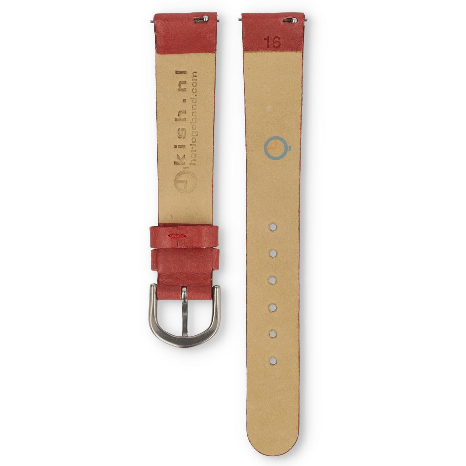 Universal Skagen watch strap - 16mm - smooth leather - colour: Red. The leather is unicoloured and has no stitching. With this, you maintain Skagen's minimalist look. This smooth leather strap is 16mm wide and has a straight universal start. You easily attach this watch strap with push pins to your watch yourself.