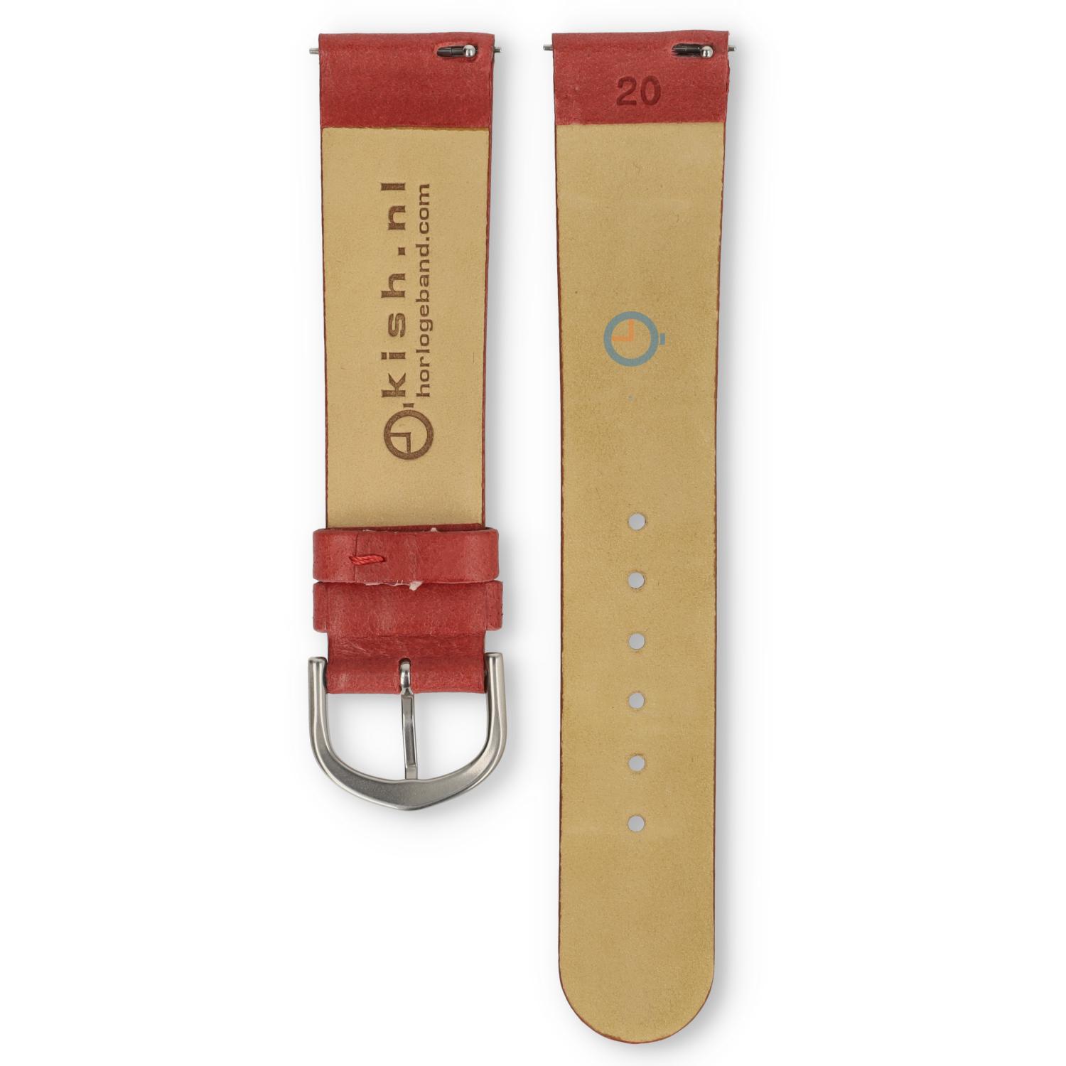 Universal Skagen watch strap - 20mm - smooth leather - colour: Red. The leather is unicoloured and has no stitching. With this, you maintain Skagen's minimalist look. This smooth leather strap is 20mm wide and has a straight universal start. You easily attach this watch strap with push pins to your watch yourself.