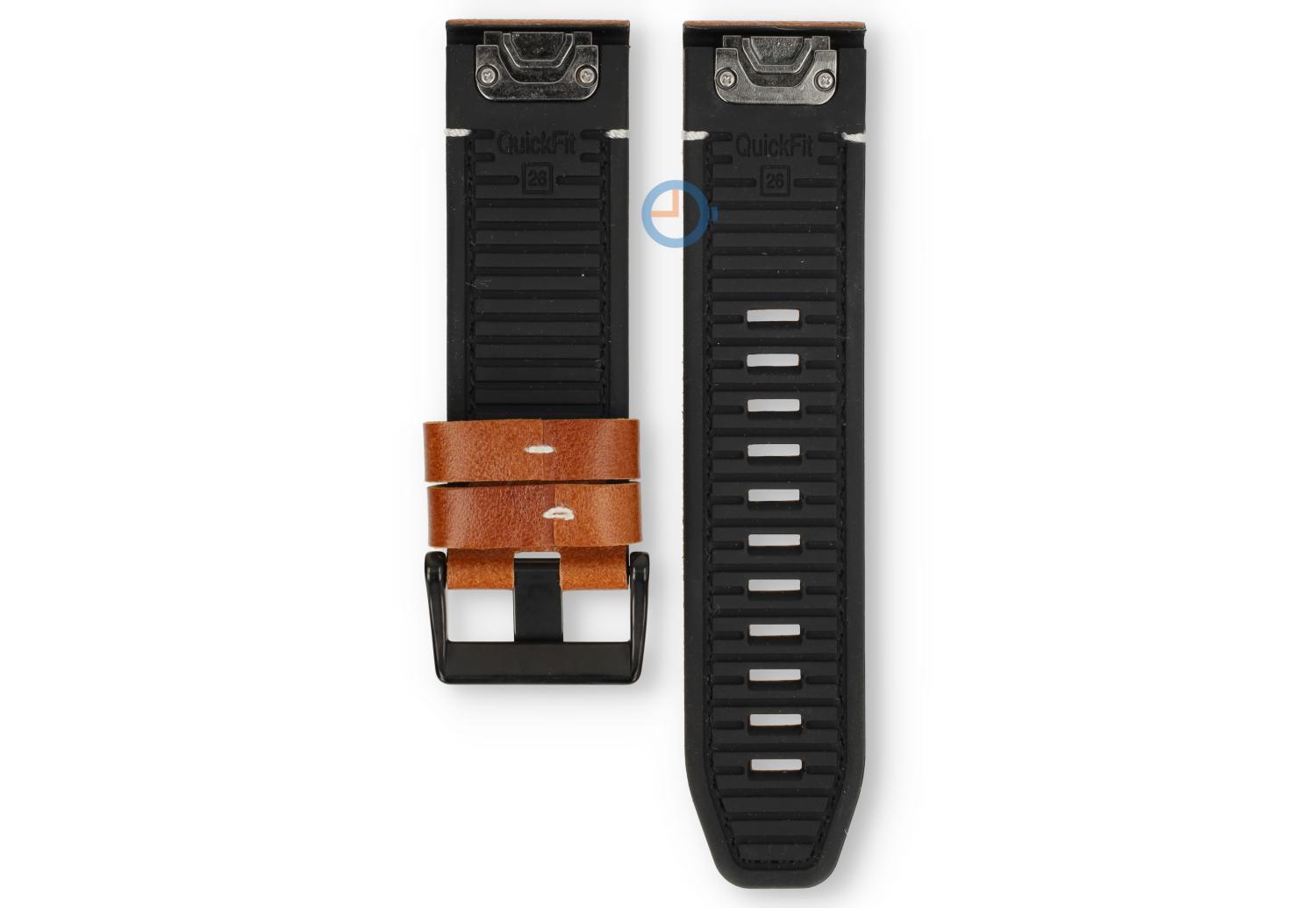 Robust hybrid strap - 26mm silicone/leather - cognac