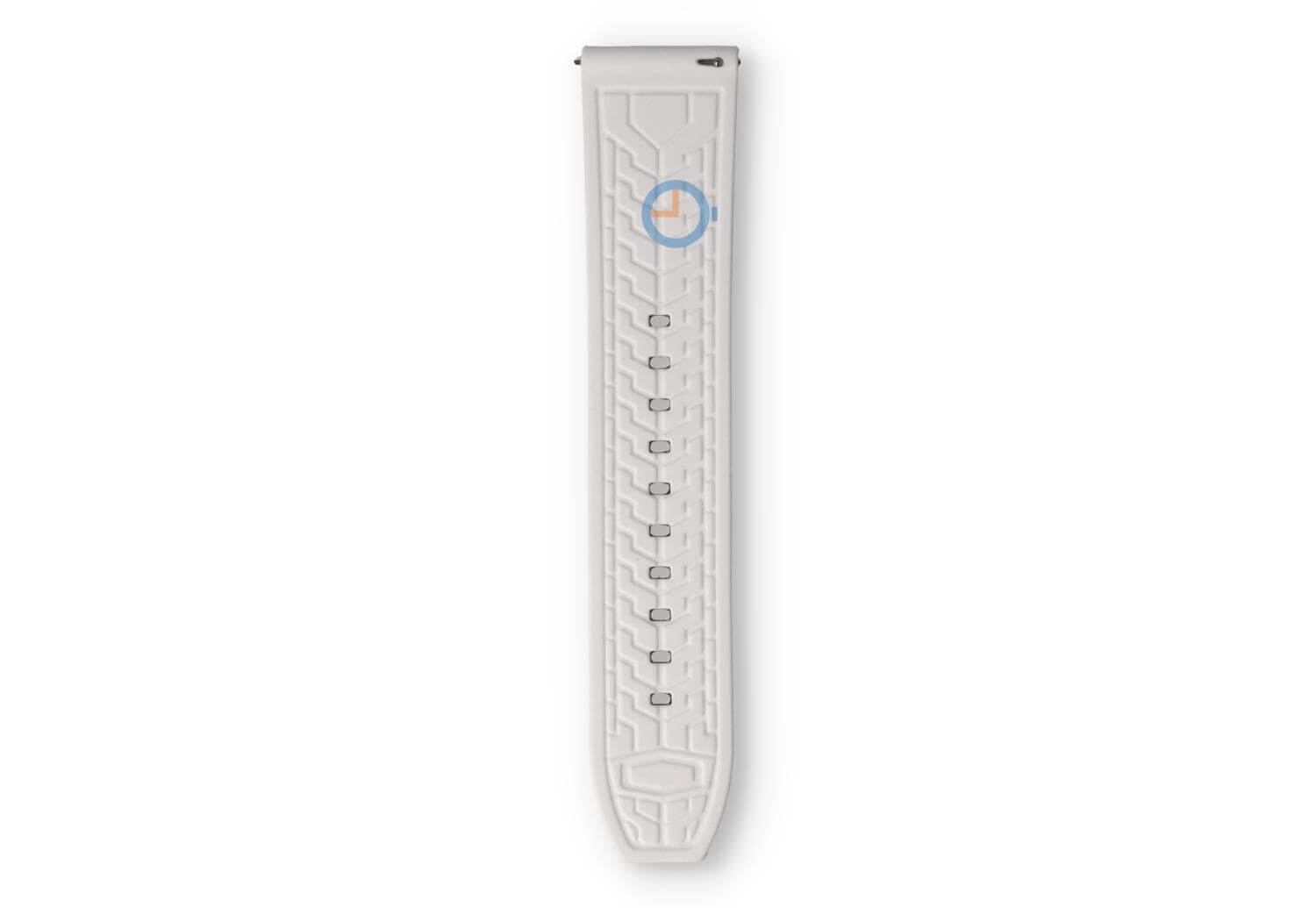 Turn your watch into an eye-catcher! This reversible watch strap has one both sides a sporty look. The black watch strap has two white lines and a white tyre motif on the other side.