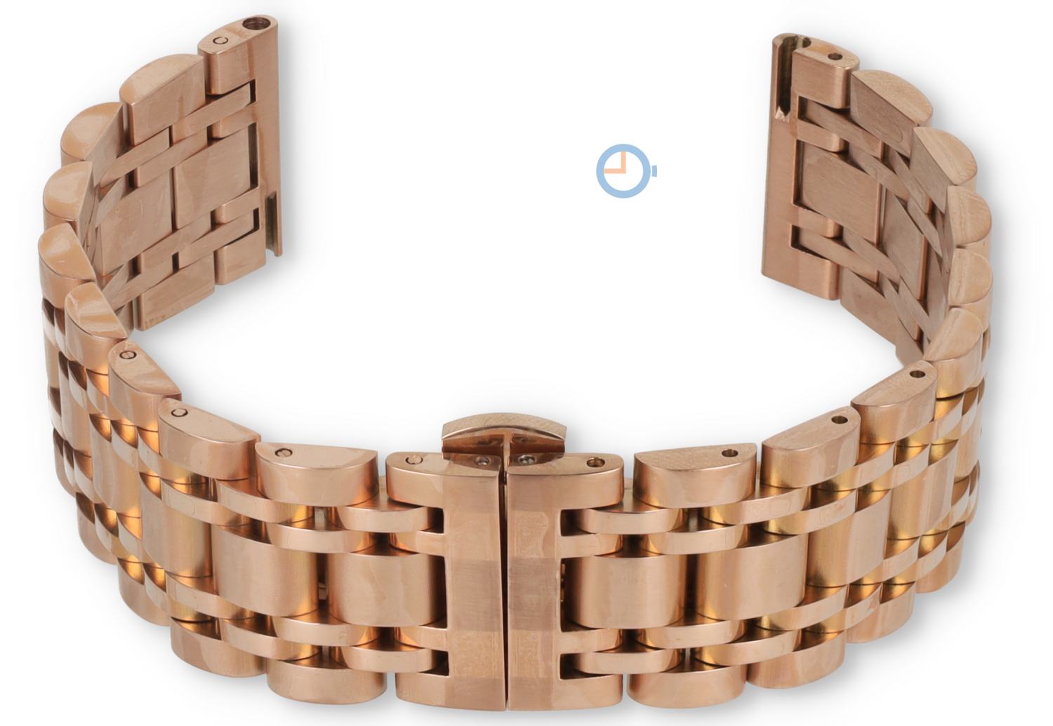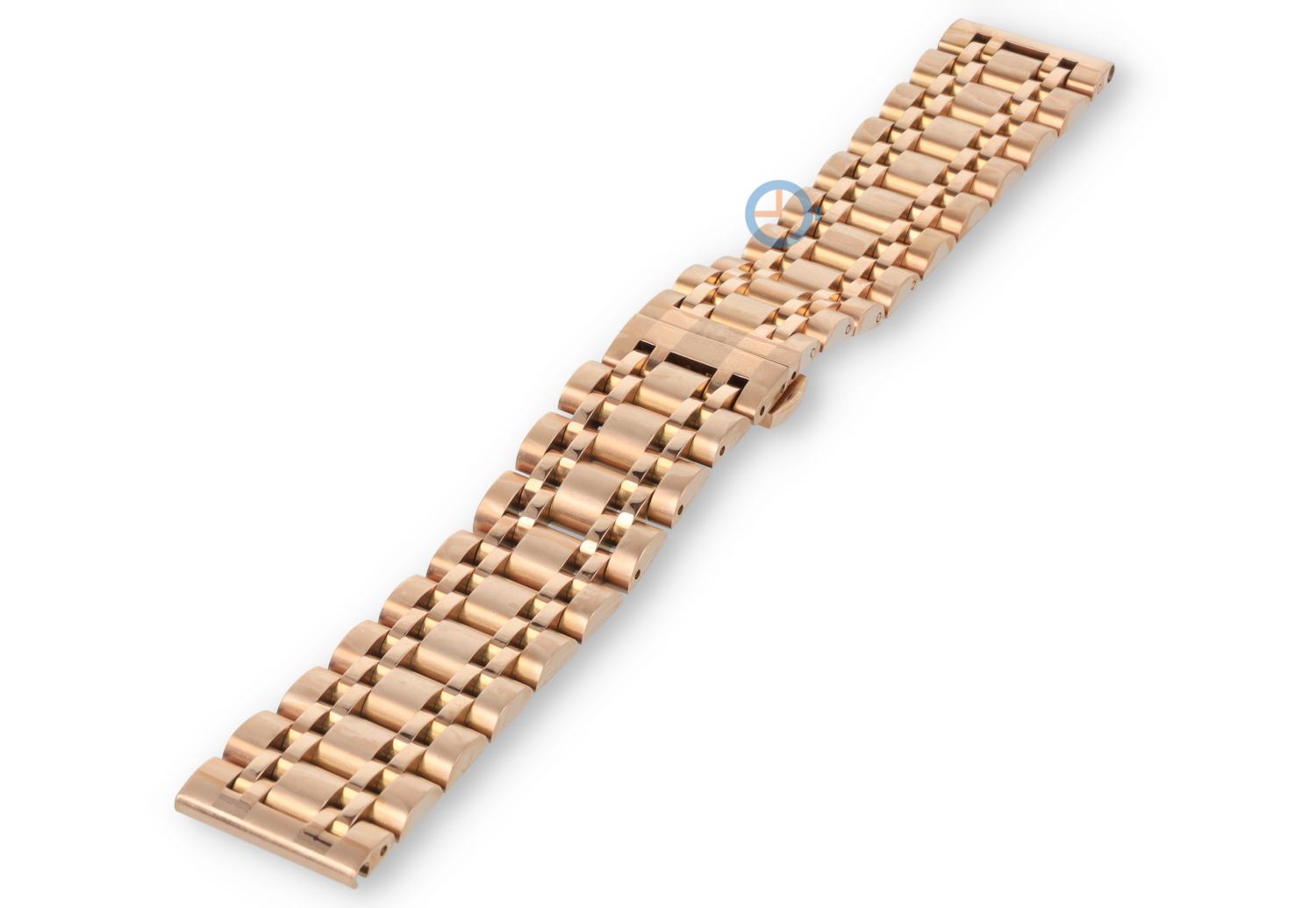 Timeless 20mm rose gold steel watch strap with butterfly clasp