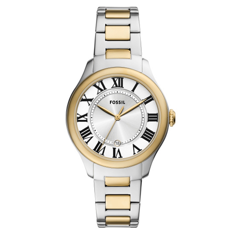 Fossil bracelet specifically made for the ES5396 . This original band is made of bicolor steel. The band features an 18 mm round lug and can be easily attached by yourself with spring bars and a spring bar tool.