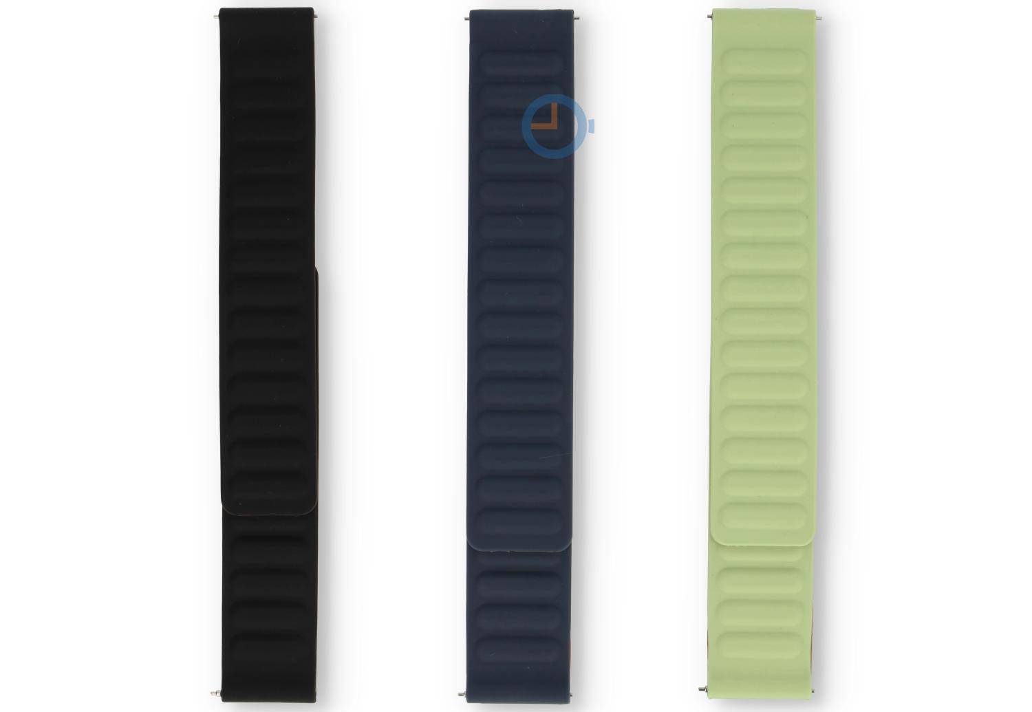 Silicon magnetic watch strap - 20mm - Pastel-Green. Experience unparalleled magnetic power in this innovative watch strap. Instead of a traditional clasp, this strap uses a powerful magnetic that is seamlessly integrated with the strap's ridges. Bovendien is dit horlogebandje volledig vervaardigd uit huidvriendelijk siliconen, wat betekent dat het veilig is for langdurig gebruik zonder irritatie.