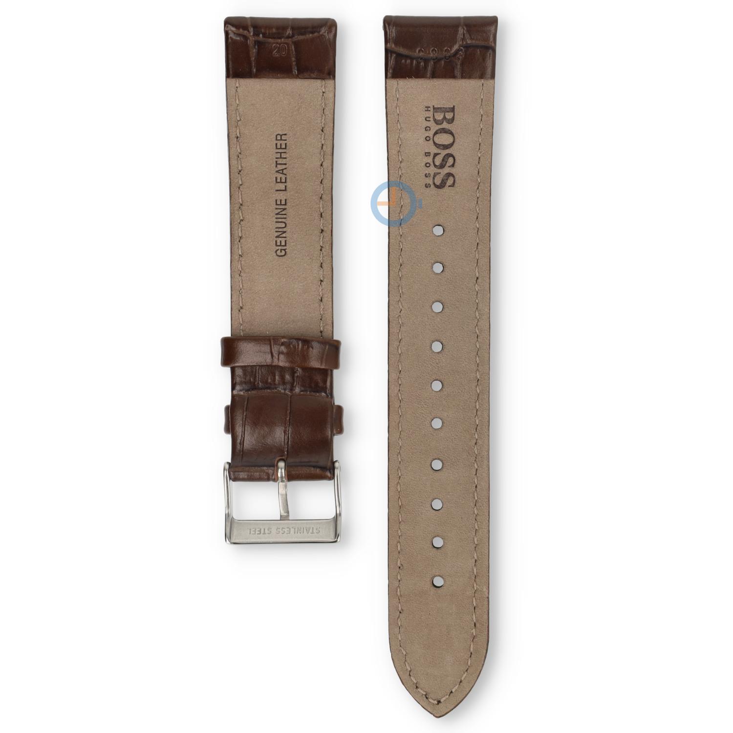 Hugo Boss watch strap 20mm – dark brown. This original Hugo Boss strap fits all Hugo Boss watches with a straight lug of 20mm. Do you also need a new battery for your watch? Then order the watch battery: 371/SR920