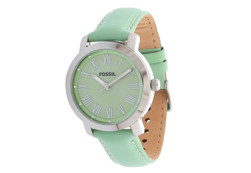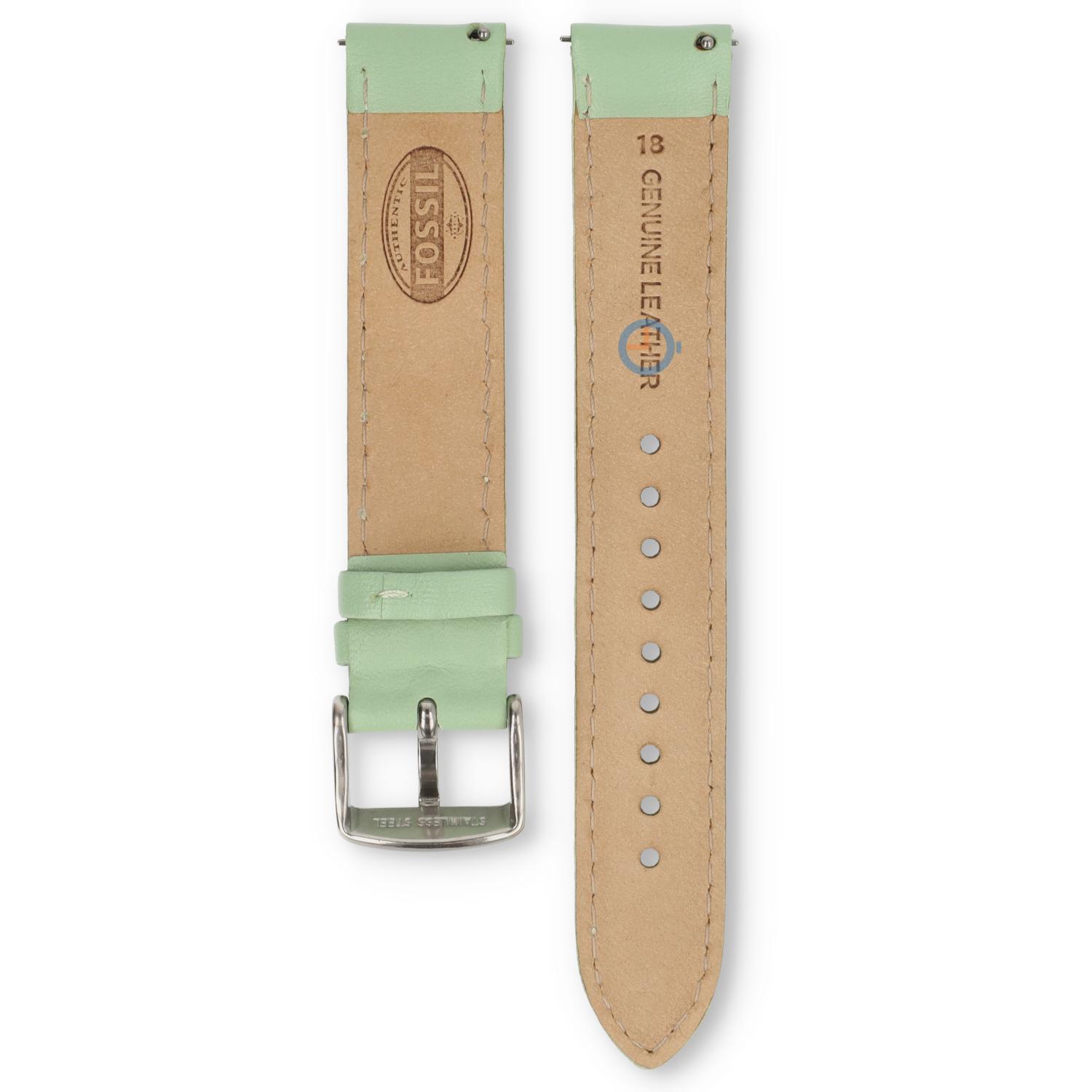 Original Fossil BQ1235 watchstrap. Mint green leather watchstrap for the Fossil BQ1235 watch. Original leather strap with Fossil buckle. Easy to mount on your watch with a springbar removal rool.