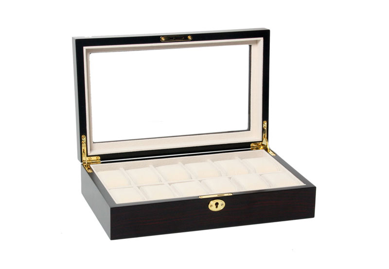 MDF watchbox ebony with space for 12 watches.