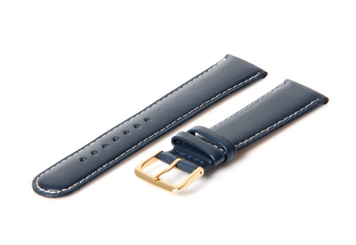 Watchstrap 18mm blue. This blue watchstrap is handmade of first quality leather. The strap has a stainless steel golden buckle.
