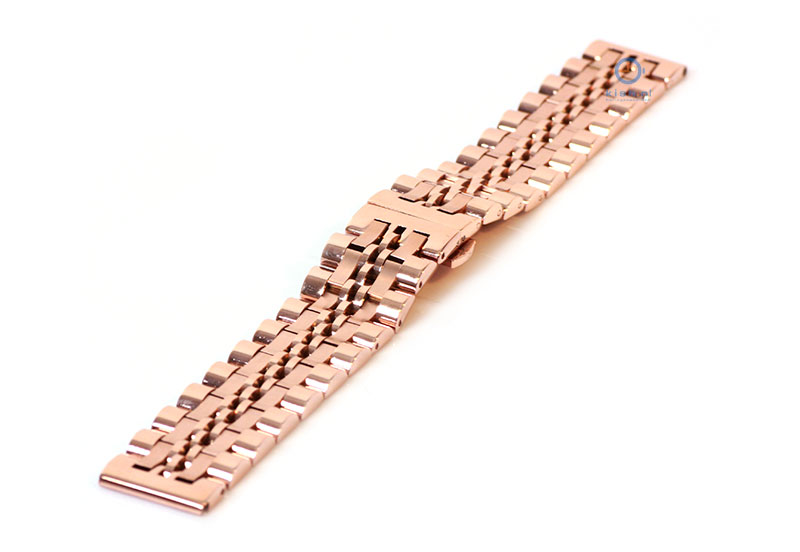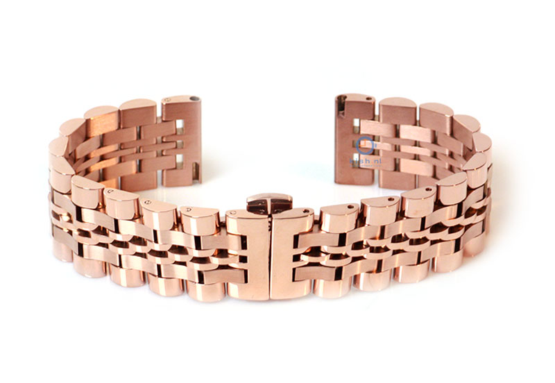 Watchstrap 20mm steel rosé gold polished/matt. This stainless steel watchband has a butterfly clasp and is suitable for all watches with a 20mm starter. The rosé gold watchband has a separate link, giving your watch a unique look. Attach the strap to your watch with 20mm Quick Switch springbars