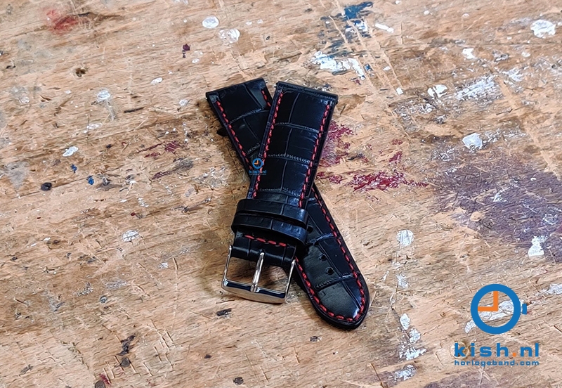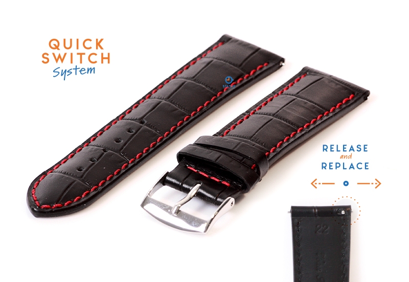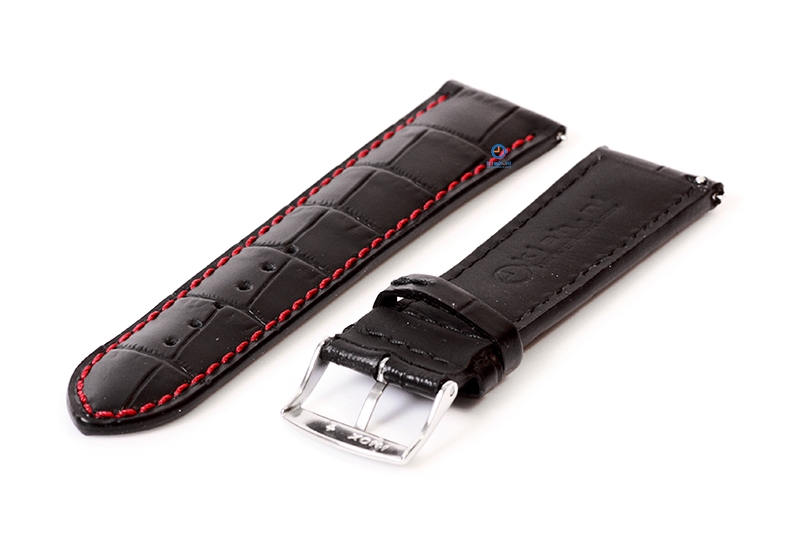 Watchstrap 22mm croco leather black-red