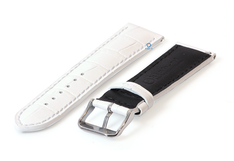 Universal watchstrap made of calfleather. Due to the quality of the leather, the watchstrap immediately feels flexible and immediately fits well around your wrist. The thick leather provides extra strength. This cool croco top layer has a beautiful fresh white color, which you can easily combine.