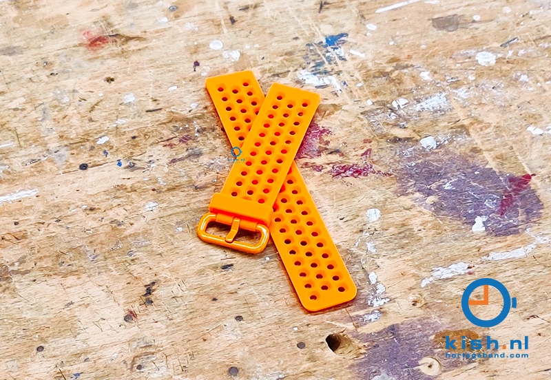 Universal silicone strap of 23mm wide. This perforated watchstrap is made of flexible silicone, which is not only very comfortable to wear but is also water resistant. Thanks to the perforated holes, the watchstrap not only looks super sporty, but it also ventilates better.