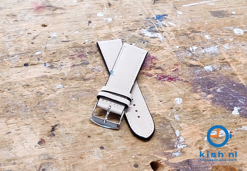 Universal watchstrap made of genuine calf leather. Because the watchstrap is made of the best quality calf leather, the watchstrap is extra sturdy. This gives excellent quality and a longer life. This watchstrap has a beautiful cream color. The watchstrap is stitched by hand, so that it is finished to perfection.