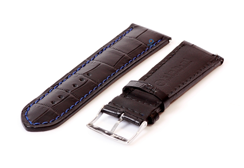 Universal watchstrap made of calf leather with a top layer of crocodile leather. The blue stitching makes the watchstrap look a little more sporty. The watchband is made by hand, so it is finished to perfection. This gives this watchstrap a good quality and it looks super sleek!