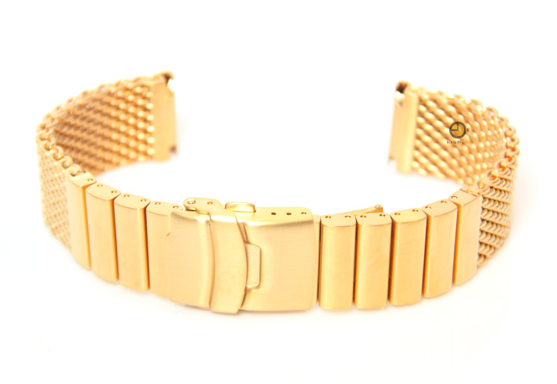 Universal watchstrap 24mm milanees matt gold. Stainless steel watchstrap with security clasp. If you're not sure whether your springbars are still useable? Order them in our shop. They are easy to mount on your watch, with a springbar removal tool. View all stainless steel watchstraps in our shop.