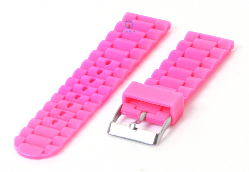 Universal watchstrap 24mm pink. This rubber watchstrap will be closed with a buckle and is suitable for watches with a 24mm starter. This watchstrap is easy to mount on your watch,with a springbar removal tool and 24mm springbars. View all rubber watchstraps in our shop.