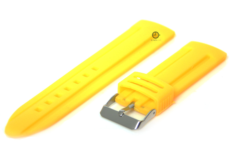 Watchstrap 24mm silicone yelllow. By the 2 slots the strap will get a sporty look. Easy to replace, see the instruction video in our shop.