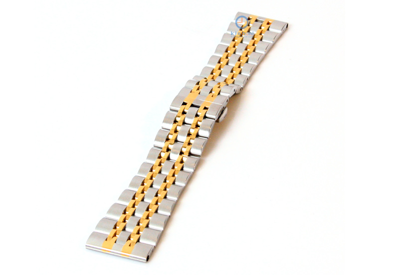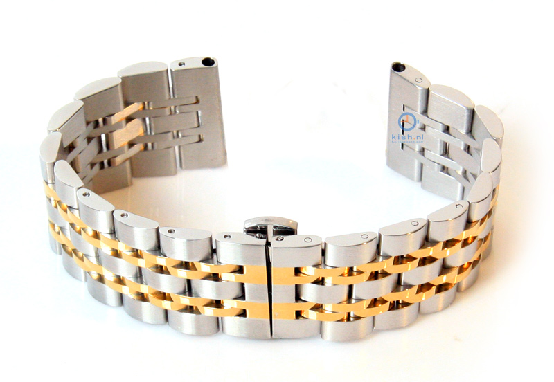 Universal watchstrap 24mm silver gold. Stainless steel watchstrap with butterfly clasp is suitable for watches with a 24mm starter. This watchstrap is easy to mount on your watch, with a springbar removal tool and 24mm springbars. View all stainless steel watchstraps in our shop.