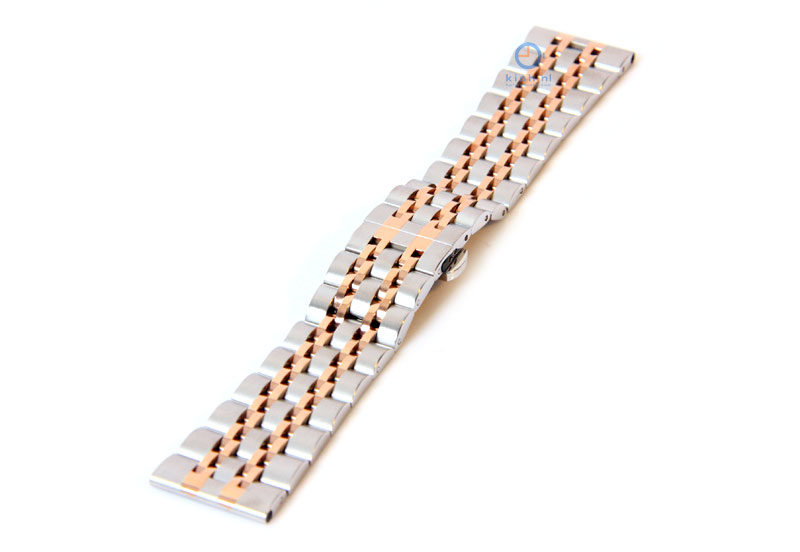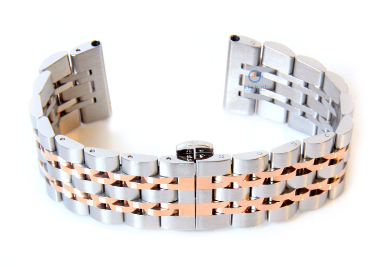 Universal watchstrap 24mm silver rose gold. Stainless steel watchstrap with butterfly clasp is suitable for watches with a 24mm starter. This watchstrap is easy to mount on your watch, with a springbar removal tool and 24mm springbars. View all stainless steel watchstraps in our shop.