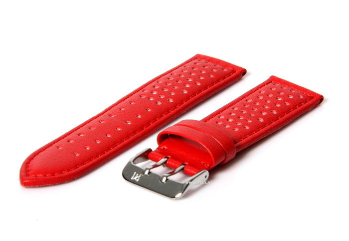 Lorica watchstrap 24mm red. Lorica watchstraps are waterproof and handmade. This watchstrap is blazing red and universal. The strap has a straight start of 24mm.