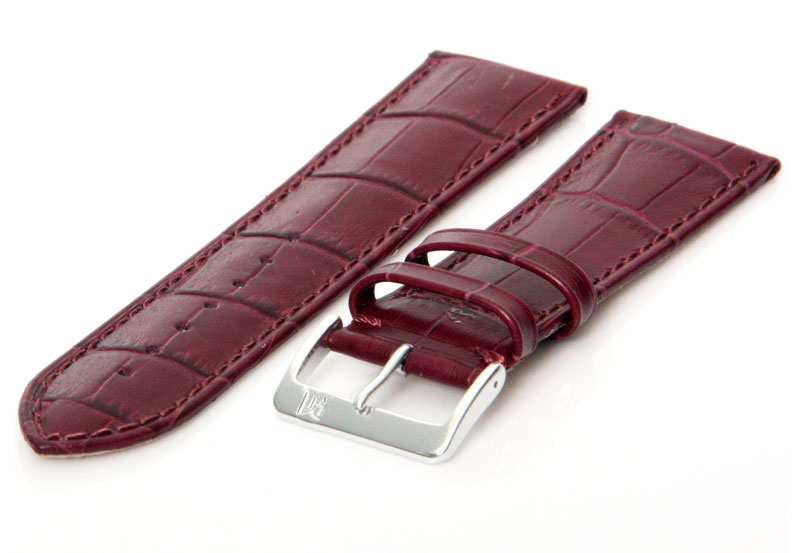 Watchstrap 26mm dark purple leather. This extra large watchstrap is made of real alligator leather. Fits on all watches with an 26mm connection. Easy to replace at home!