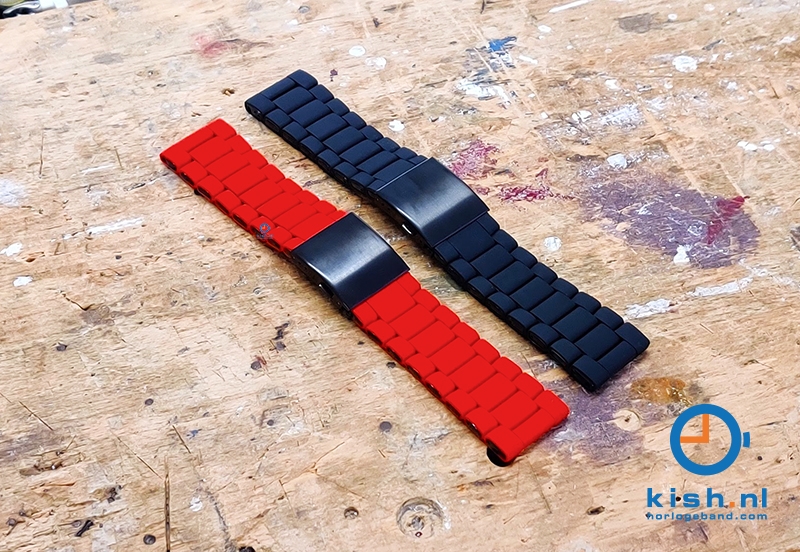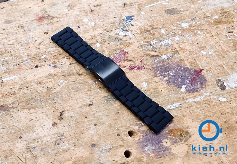 Universal watchstrap for watches with a 28mm starter. This steel watchstrap has a top layer of black silicone, which gives the watchstrap not only the advantage of the strong steel, but also the comfort of the silicone. Moreover, it gives your watch a completely different, but super cool look!
