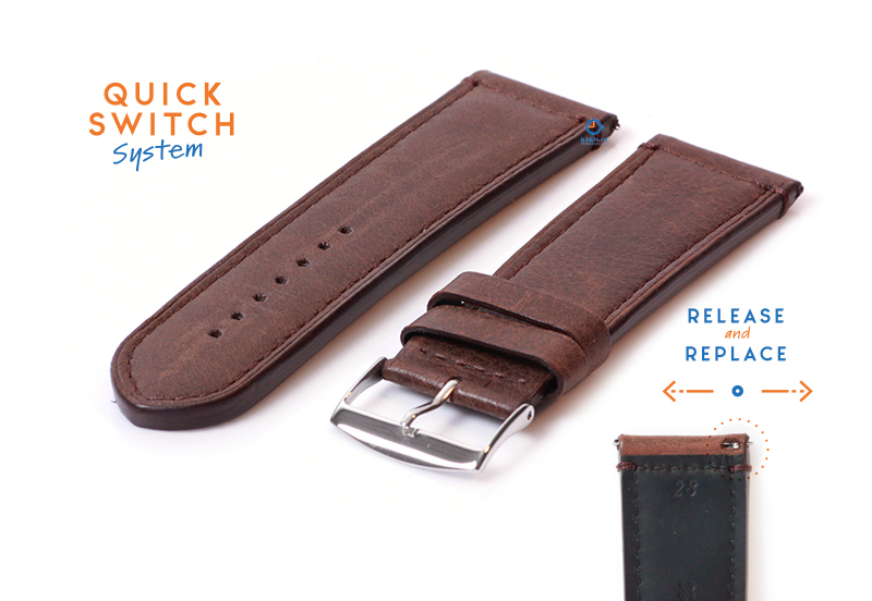 Universal watchstrap 28mm brown calf leather. This watchstrap is made of real calf leather with brown stitches. Fits on all watches with an 28mm connection. Easy to replace at home!