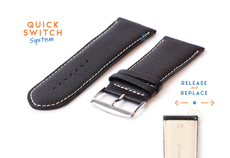 Watchstrap leather 30mm. Universal black watchband handmade of first quality leather. Check our instructionvideo, you will see it's easy to assemble this strap on your watch!
