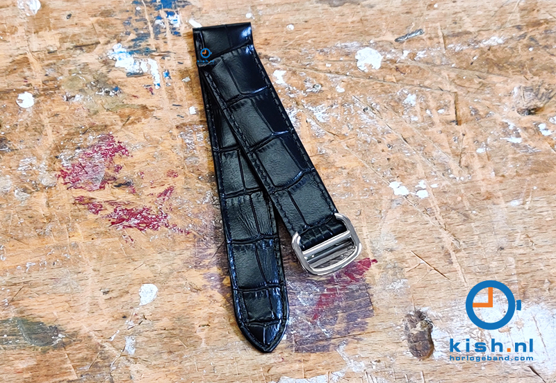 Watchstrap for Cartier watches. Give your watch a fresh look and replace the watchband! This way your watch will look like new again. This characteristic watchstrap has a beautiful alligator print and is finished with the utmost precision. This gives excellent quality and for a longer life.