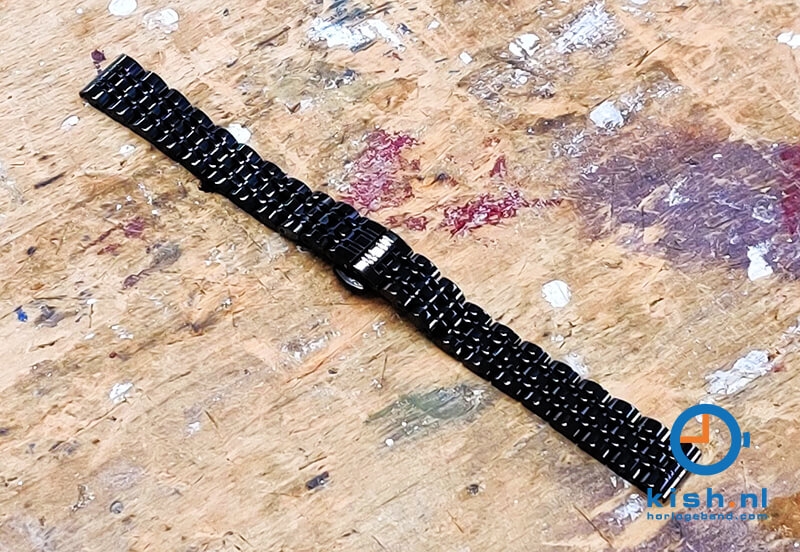 Universal black watch band for watches with a 14mm starter. This steel watch band has a subtle look, which makes the band easier to combine! The butterfly clasp makes it easy to put on and take off the watch. You open the clasp with the two pushers on both sides.