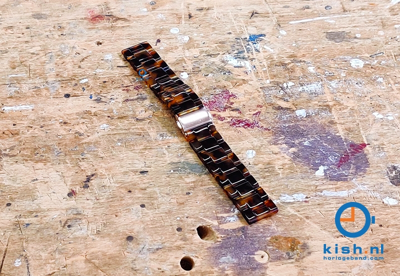 Wear your watch or smartwatch in style with this great watchstrap with turtle brown print. Complete your outfit with this premium resin turtle strap with a gold (push)security clasp. The links are removable, so you can resize the strap to fit your wrist perfectly.