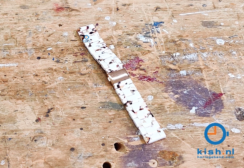This design watchstrap gives a special look to your watch. Please note that this strap is slightly less strong than a linked steel watchstrap.