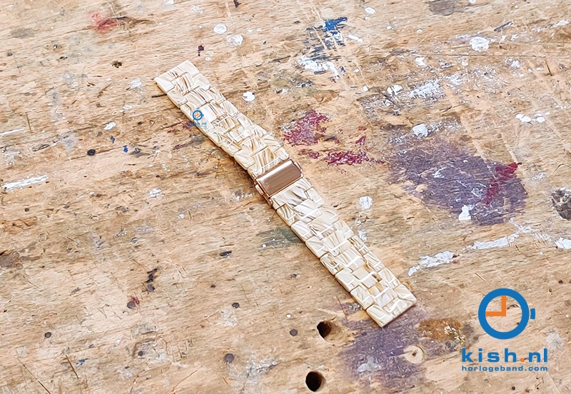 This design watchstrap gives a special look to your watch. Please note that this strap is slightly less strong than a linked steel watchstrap.