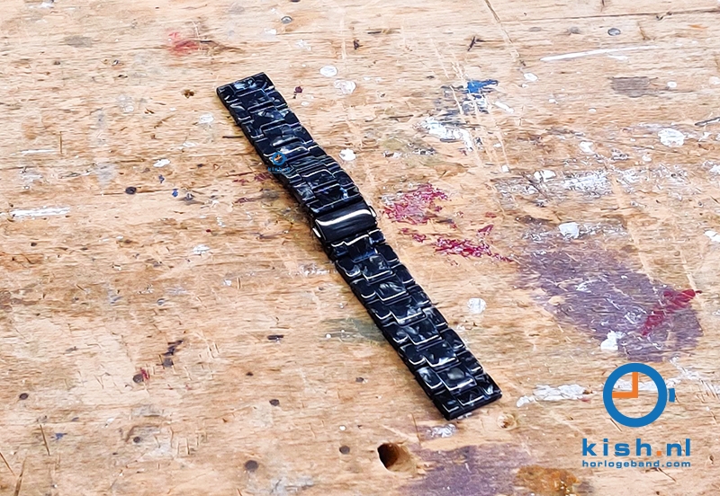 Wear your watch or smartwatch in style with this great watchstrap with black/grey Granite print. Complete your outfit with this premium resin Granite strap with a gold (push)security clasp. The links are removable, so you can resize the strap to fit your wrist perfectly.